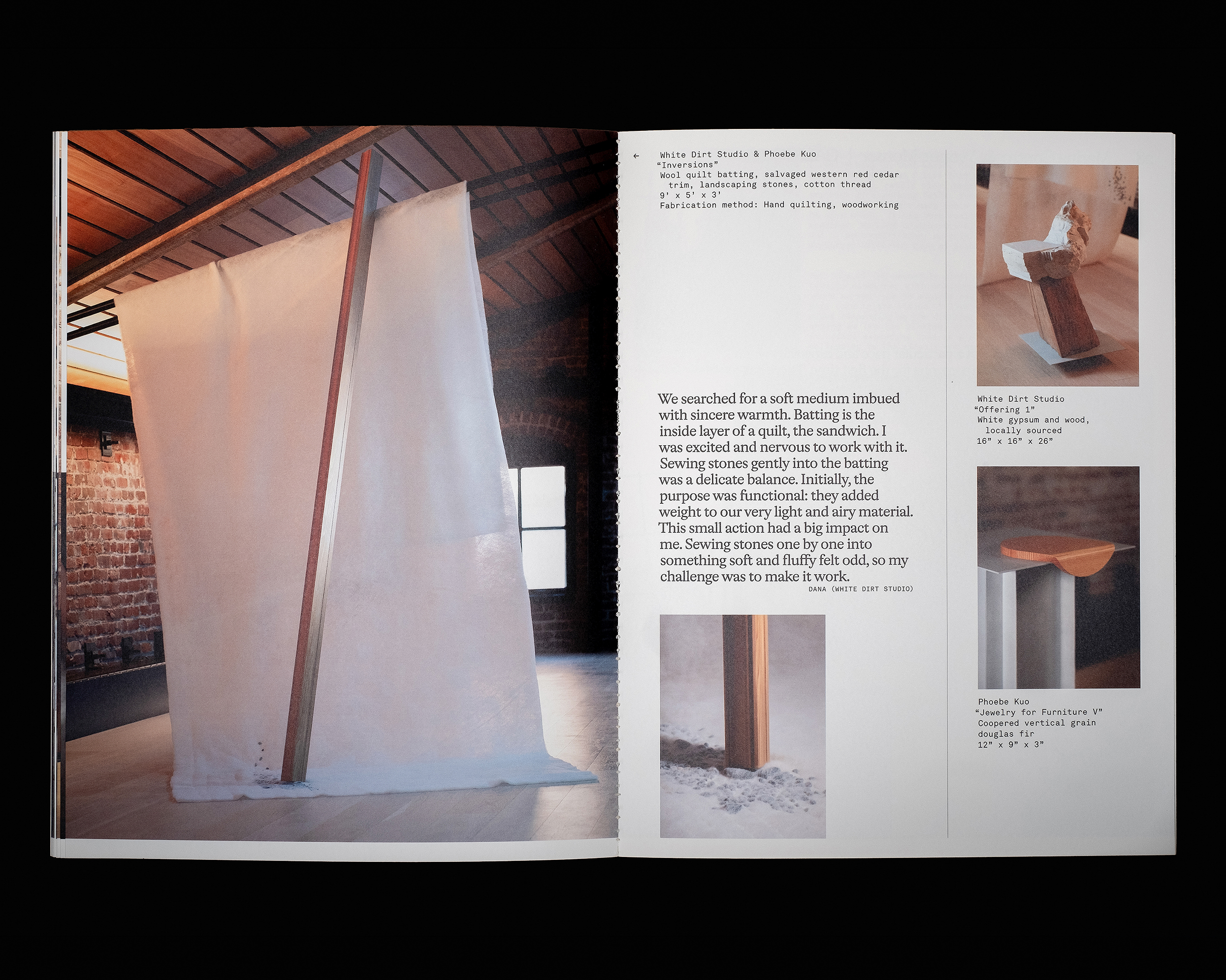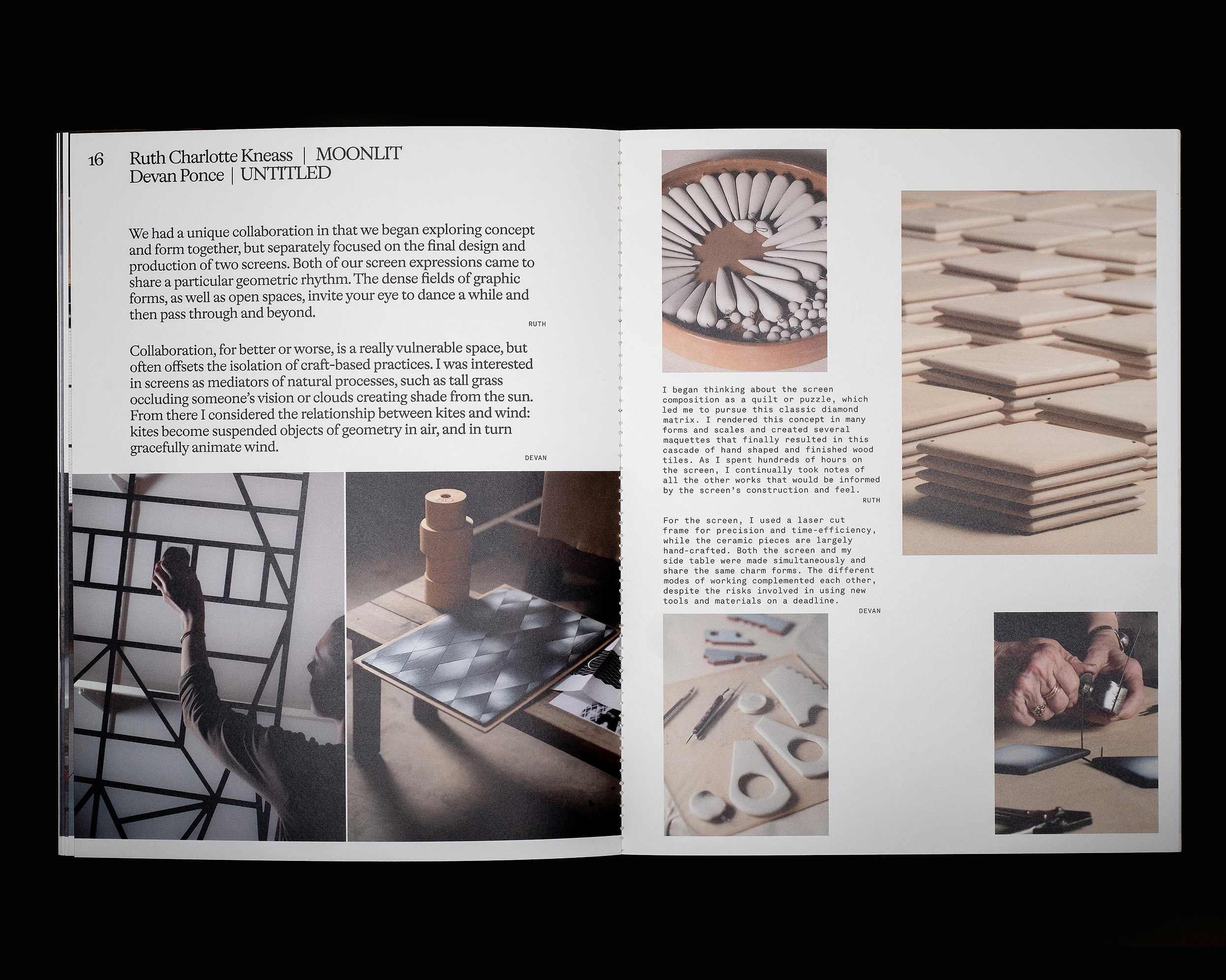 WORKS IN PROGRESS brings together the contemporary craft + design community in the San Francisco Bay Area. The second edition in the series expands upon the idea of community through the lens of creative co-creation, highlighting fourteen artists/designers who have been paired together to interpret a screen. An object in itself yet inherently spatial, a screen is an intervention in space that helps us frame new perspectives.